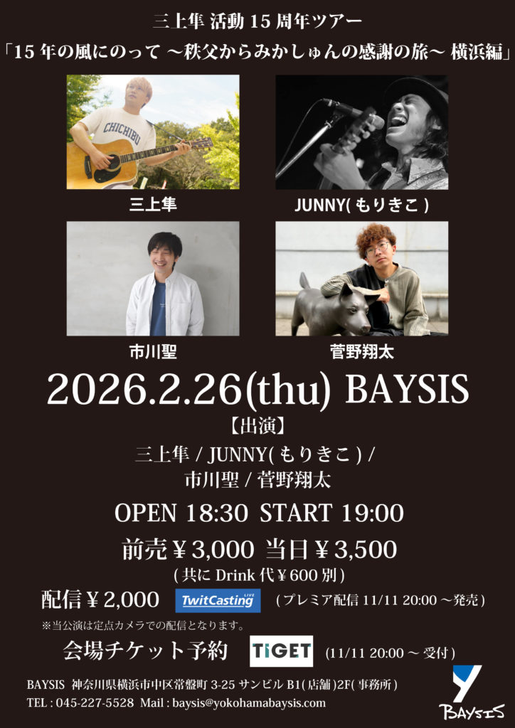 ※リクエスト曲がある方はお申し込み時にご記入ください(三上隼オリジナル曲のみ、1人1曲まで)