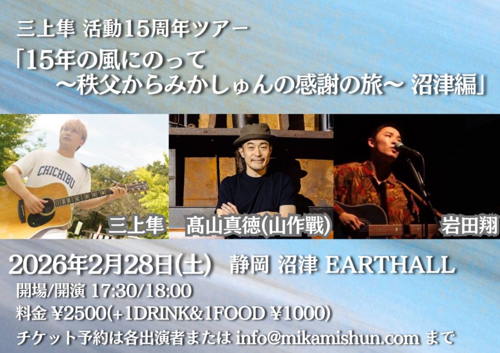 三上隼 活動15周年ツアー 「15年の風にのって ~秩父からみかしゅんの感謝の旅〜沼津編」