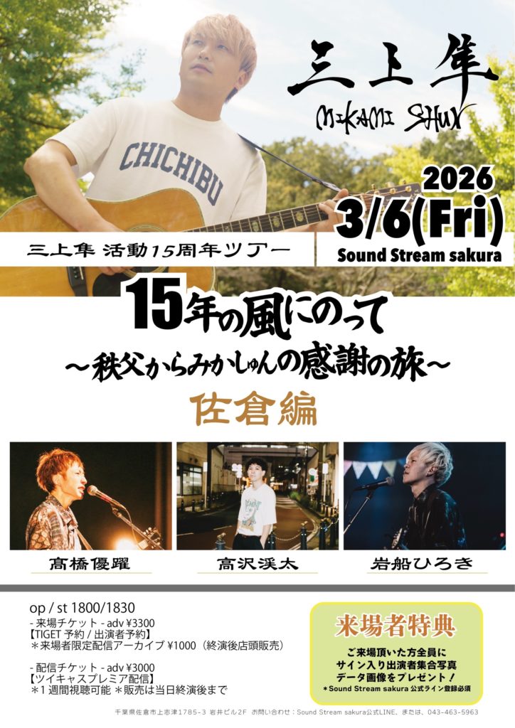 三上隼 活動15周年ツアー「15年の風にのって ~秩父からみかしゅんの感謝の旅~」佐倉編