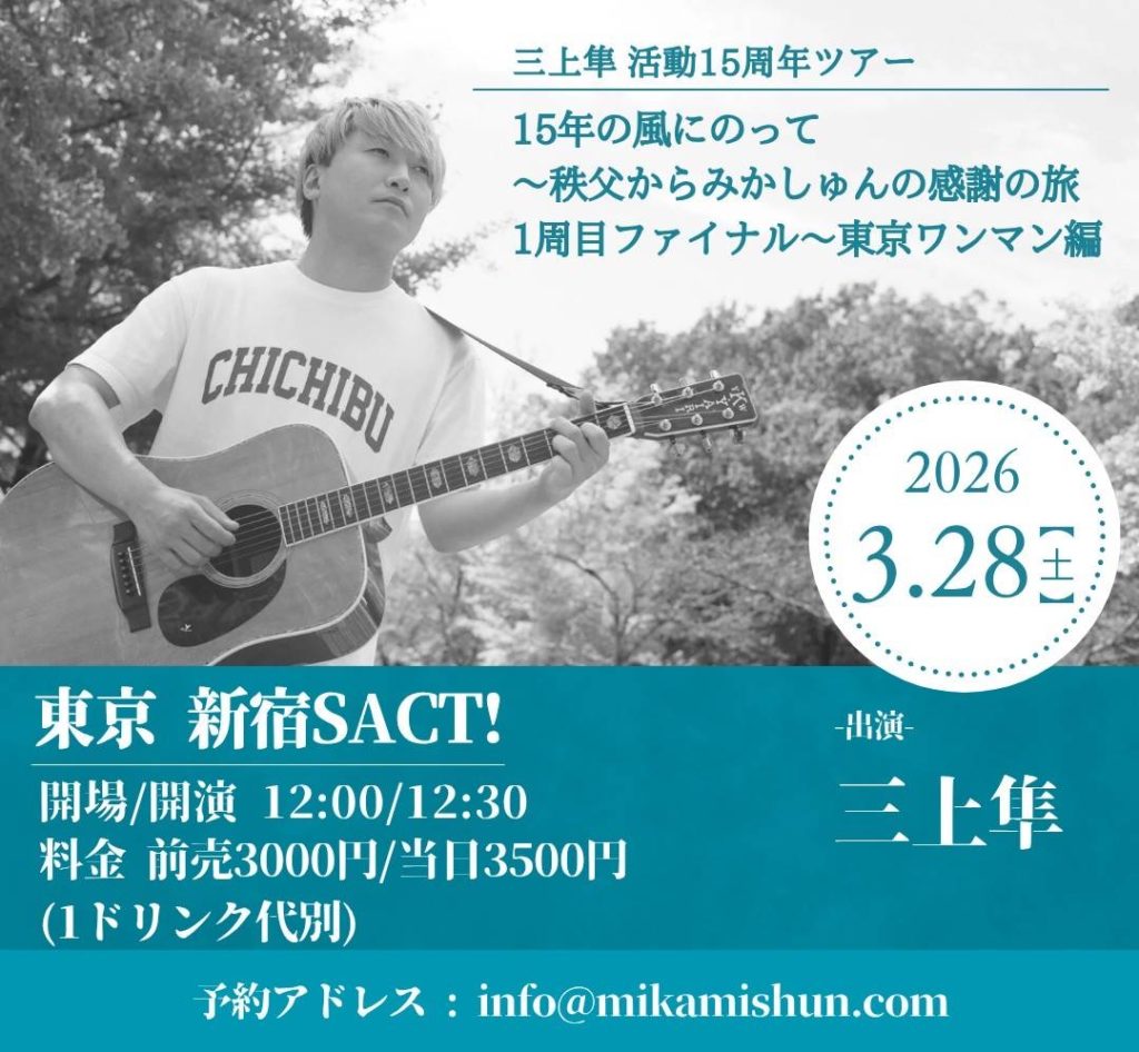 三上隼 活動15周年ツアー 「15年の風にのって ~秩父からみかしゅんの感謝の旅 1周目ファイナル ~東京ワンマン編」