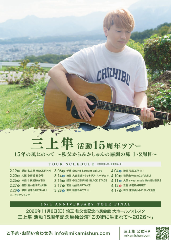三上隼 活動15周年ツアー 「15年の風にのって ~秩父からみかしゅんの感謝の旅~ 2周目」